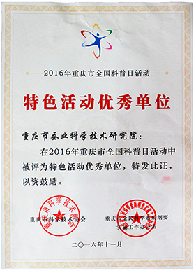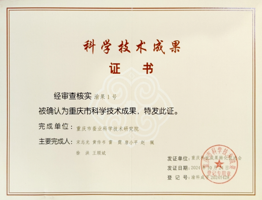重庆市蚕桑产业多元化发展研究及示范(科学技术成果证书)